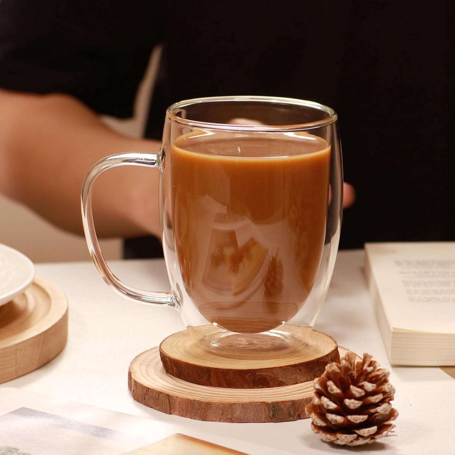 CNGLASS 12oz Double Walled Glass Coffee Mugs,Insulated Glass Mugs with Handle,Clear Espresso Cups for Latte,Cappuccino,Tea Bag,Set of 2