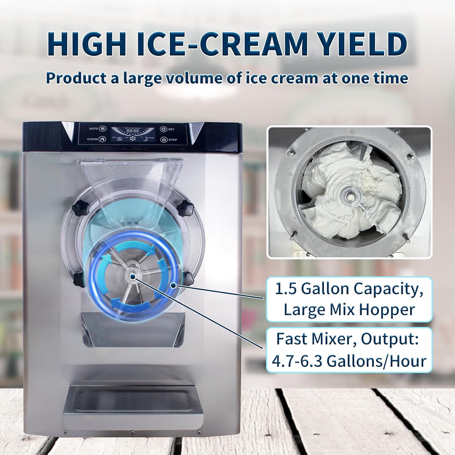 Ice Cream Maker Commercial Machine 18-24L/H, 6.3Gph Capacity Suitable for Restaurant/Bar/Home, 2000W Hard Ice Cream Machine with LED Display, (110V 60Hz)