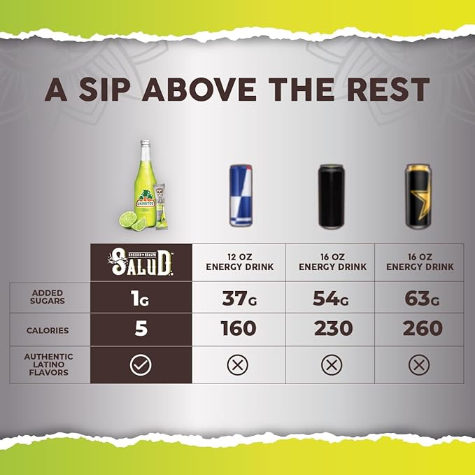 - US vs THEM - Unlike traditional energy drinks loaded with sugars, Salud will turn plain water into a mouth-watering Agua Fresca drink with only 1g of added sugar and 5 calories per serving. You can feel good about starting your mornings and workouts with Salud!