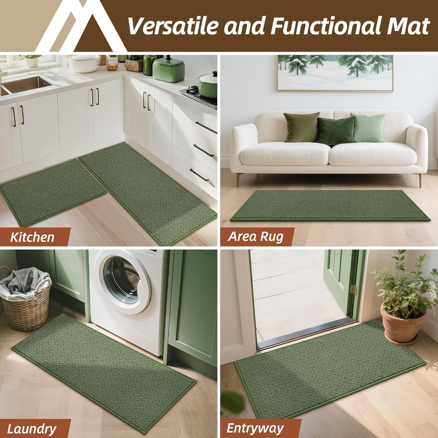 COSY HOMEER Kitchen Rugs and Mats 2PCS Non Slip Kitchen Mats for Floor Washable Stain Resistant Kitchen Runner Rug Sets Absorbent Kitchen Floor Mat 20"x32"+20"x48",Green