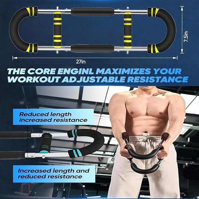 - [Full upper body fitness equipment] Portable and detachable Twister Arm Trainer as your personal workout trainer and helping you get a killer chest workout, Through the training guide chart. Strength bar work multiple muscle groups with precision, including chest, arms, biceps, abs, shoulders and back, and thigh muscles.