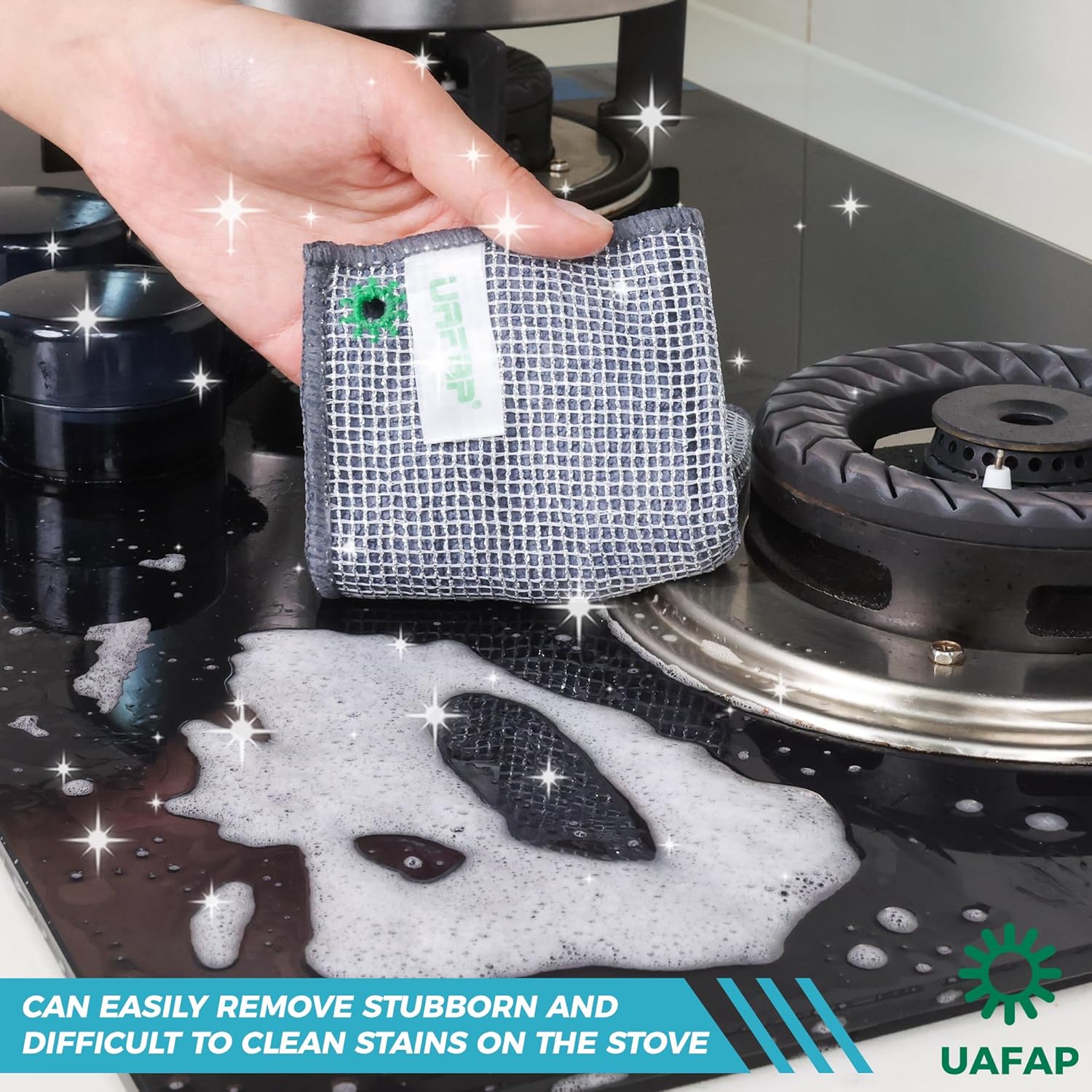 - Material Upgrading: Our wire dishwashing rag Made from 40% durable chemical fiber and 61% premium polyamide microfiber. Highly absorbent, streak-free, lint-free. Effectively traps dirt, dust, grease, and moisture. One side tackles tough stains, the other provides gentle cleaning/drying.