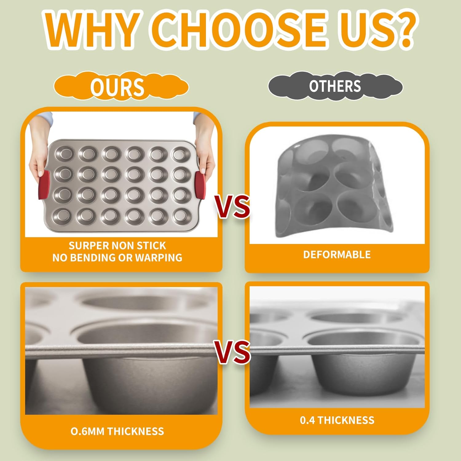 - Suitable for Numbers Cooking Appliances - The durability of our non stick muffin pan makes it suitable for use on numerous home cooking appliances such as your ovens, refrigerator and freezers without the fear of it from rusting.