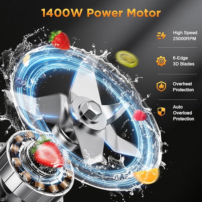 - High-Performance Blending: Featuring a 1400W motor with 25000 RPM speed and durable stainless steel blades, H-Duka blender efficiently processes ice, frozen fruits, and firm ingredients into smooth, creamy textures - helping preserve nutrients with quick preparation