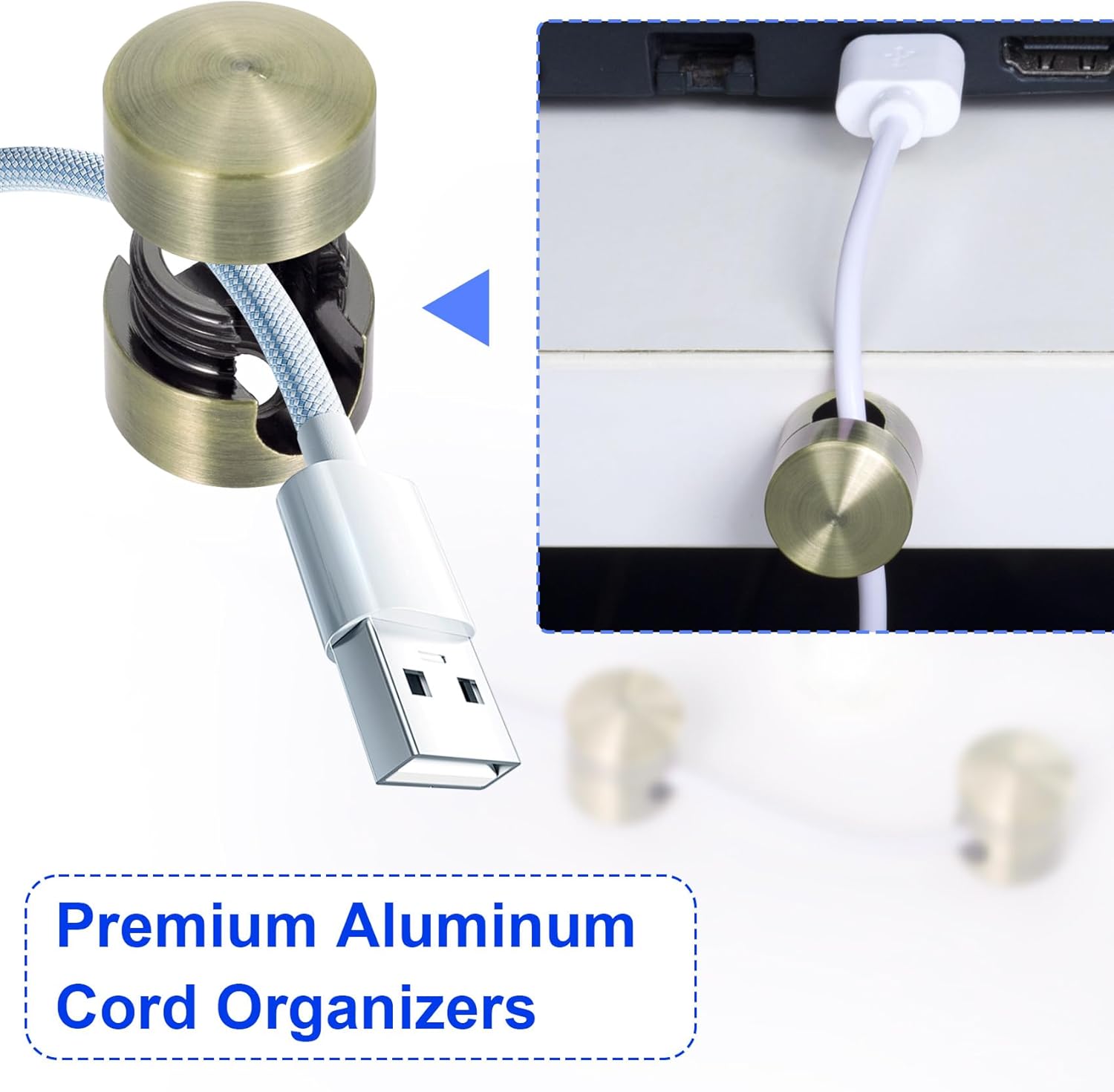 - Package Included and Size: You will receive 3 sets of gold, silver, antique copper cable anchor holders for cords, each color has 1 set, enough for your daily use. The size of each cord holder is 0.67 x 0.63 in/17 x 16 mm and the hole size is 0.3 x 0.23 in/8 x 6 mm, easy to carry and use
