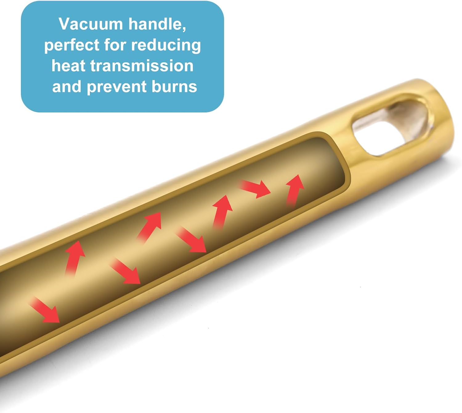 Gold Soup Ladle - 18/10 Stainless Steel Ladle Spoon, 13.8" Soup Spoons [Integral Forming, Heat Resistance,Vacuum Handle] Kitchen Metal Ladel for Cooking, Serving, Stirring, Canning,Sauce, Wok & Soup