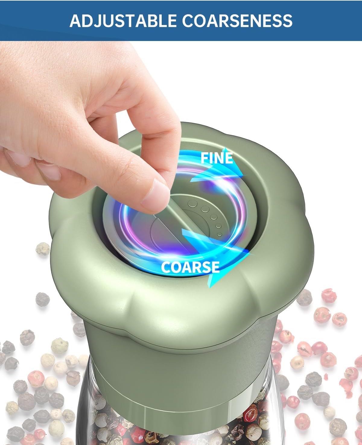 - EASY TO USE AND CLEAN - With its simple yet efficient design, the salt and pepper grinder set is easy to use and even easier to clean. Simply twist the upper body to get the seasonings you need. The glass container is washable directly by water for added convenience