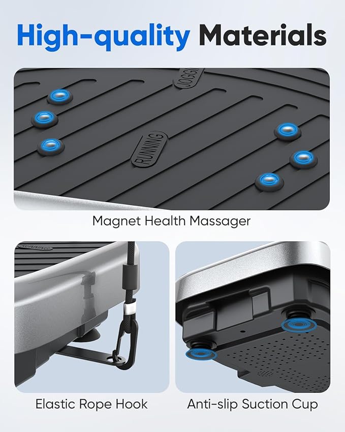 - Effortless High-Tech Design: Perfect for tech-savvy users, this silver vibration plate offers easy-to-use controls and quick setup. No more fiddling with gear – dive into fitness with this vibration plate for weight loss.