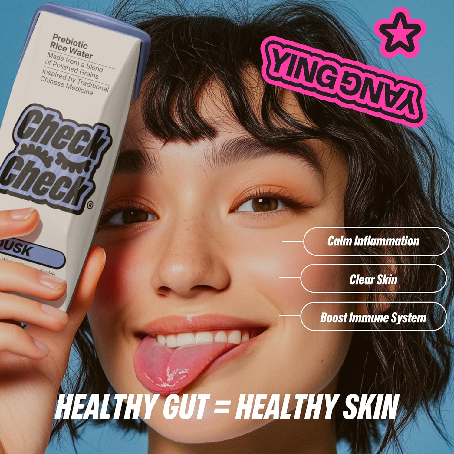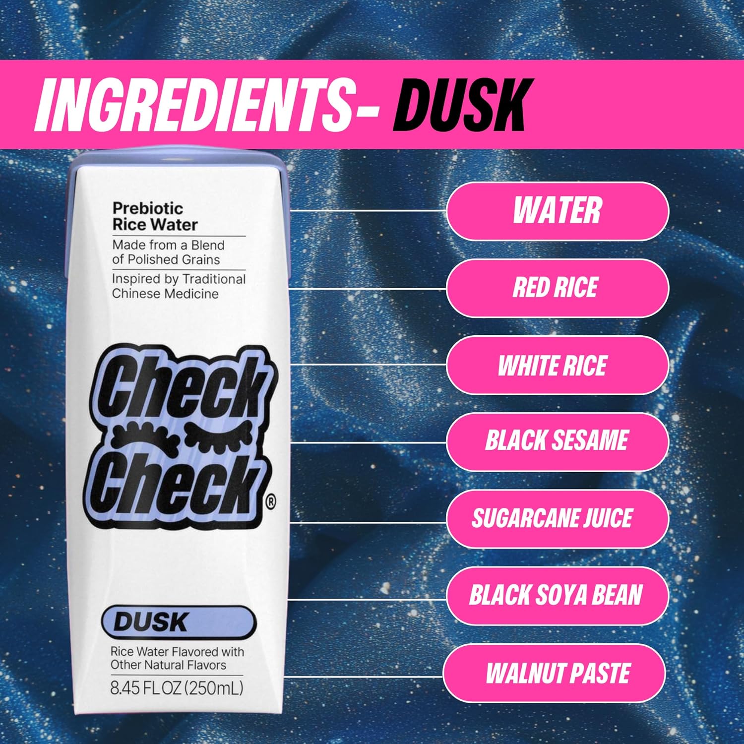 CheckCheck Prebiotic Rice Water, Dawn and Dusk Variety, 12 Pack, 8.45 Fl Oz Bottles (12 Pack, Dusk)