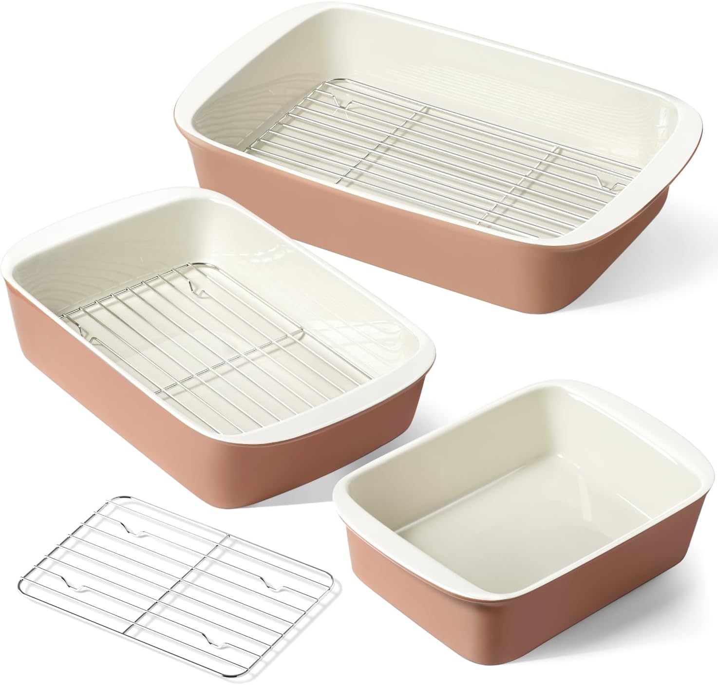 - Drip Racks for Healthier, Crispier Cooking: Each baking dish includes a matching oil-drip rack, perfect for roasting meats, bacon, and more. The racks help reduce excess grease, allowing you to cook delicious, healthier, and crispier meals