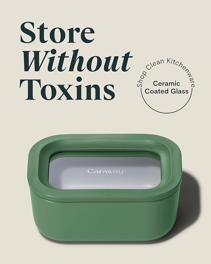 Caraway 2pc Glass Food Storage Set - 2.6 Cup Food Containers (2) - Non-Toxic Ceramic-Coated Glass - Air Release Technology - Compact & Stackable Design - Sage