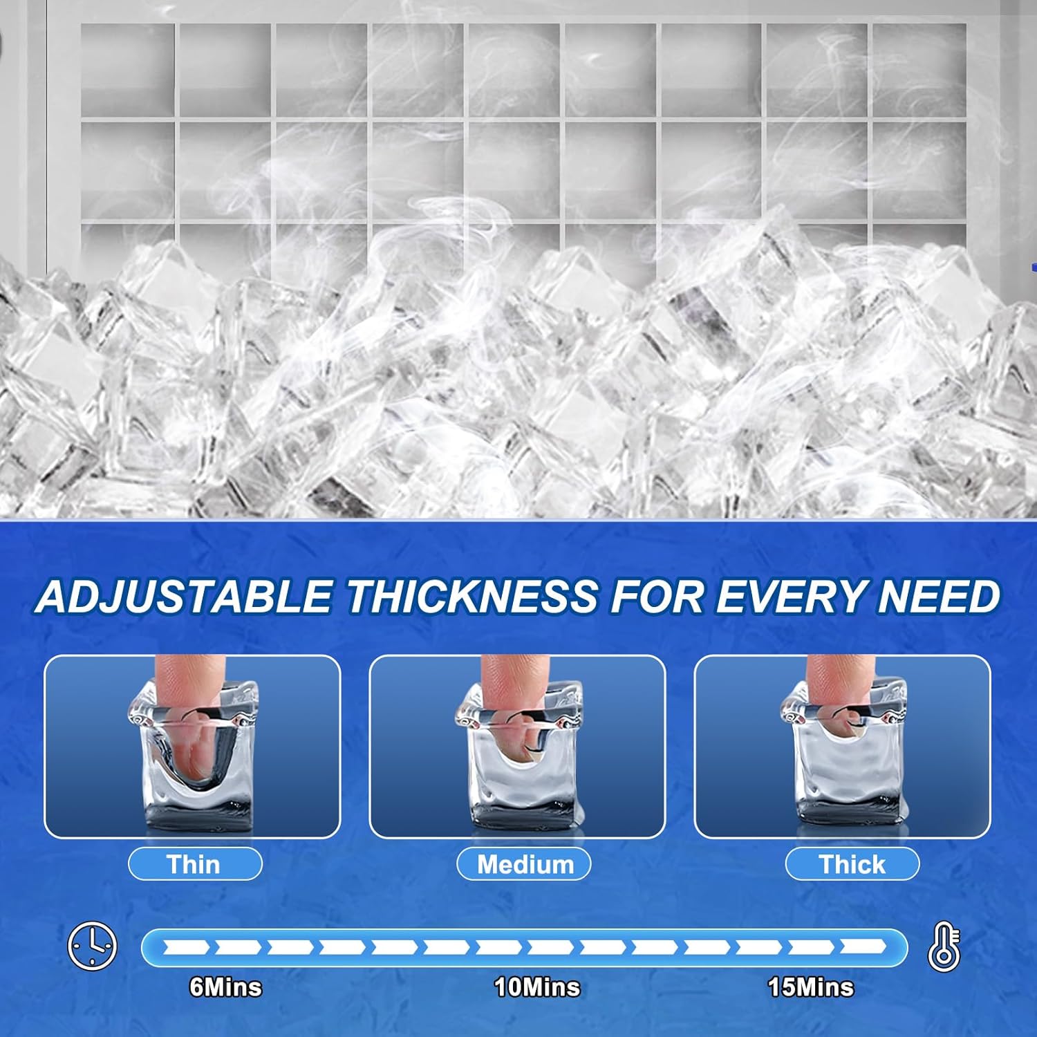 - 【Smart Control · Multi-Function Panel】- Easily control all functions through the one-touch LCD control panel: 24-hour reservation, automatic cleaning, blue light lighting, defrosting function and fault prompts are all available. You can also adjust the ice making time and customize the ice thickness as needed.