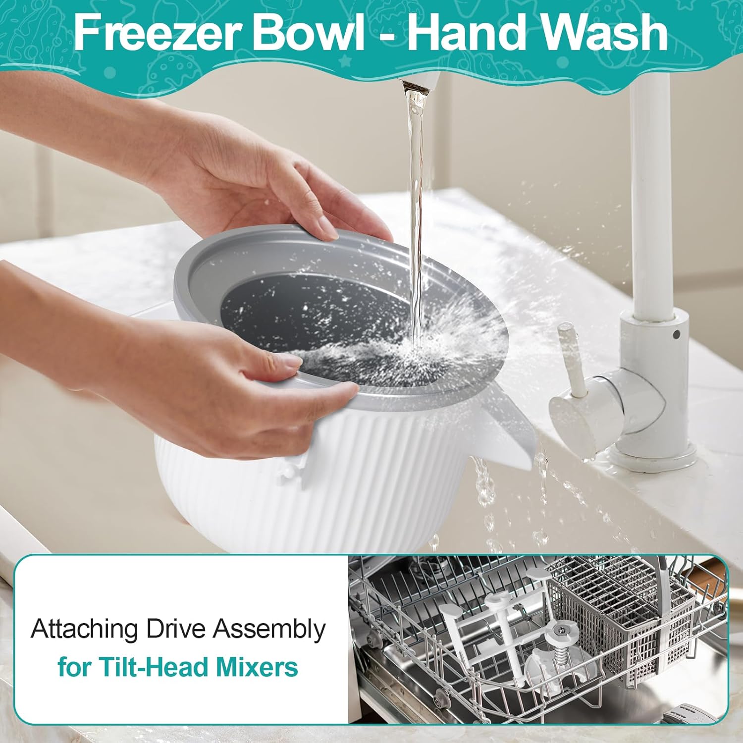 - EASY CLEANING & QUALITY SUPPORT: The attachment fit with the kitchenaid ice cream maker is dishwasher-safe on the top rack. Freezer bowls should be gently washed and dried before use.