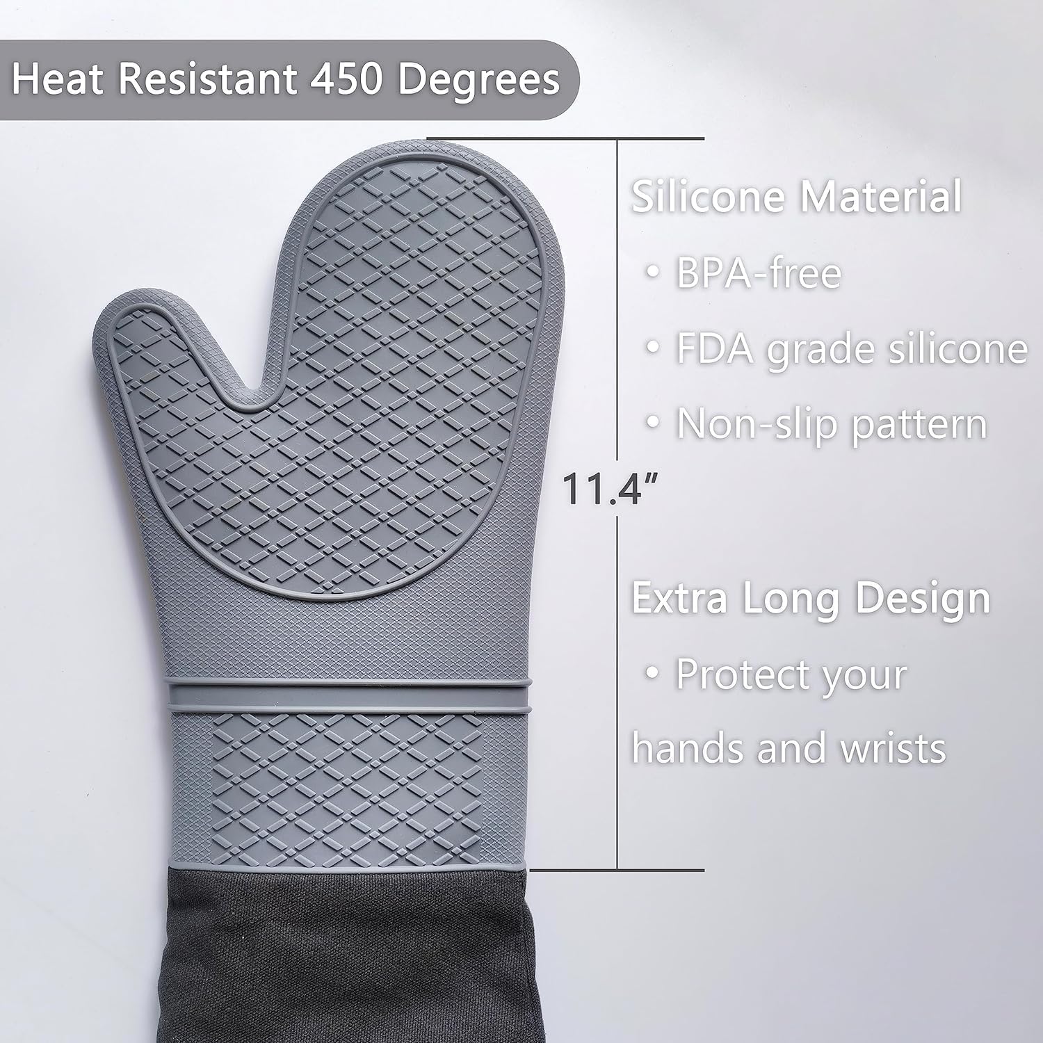 - 19.5"Silicone Oven Gloves Professional Material: Made with professional commercial grade silicone(100% FDA Grade and BPA Free), quilted cotton lining. Eco-friendly and durable.