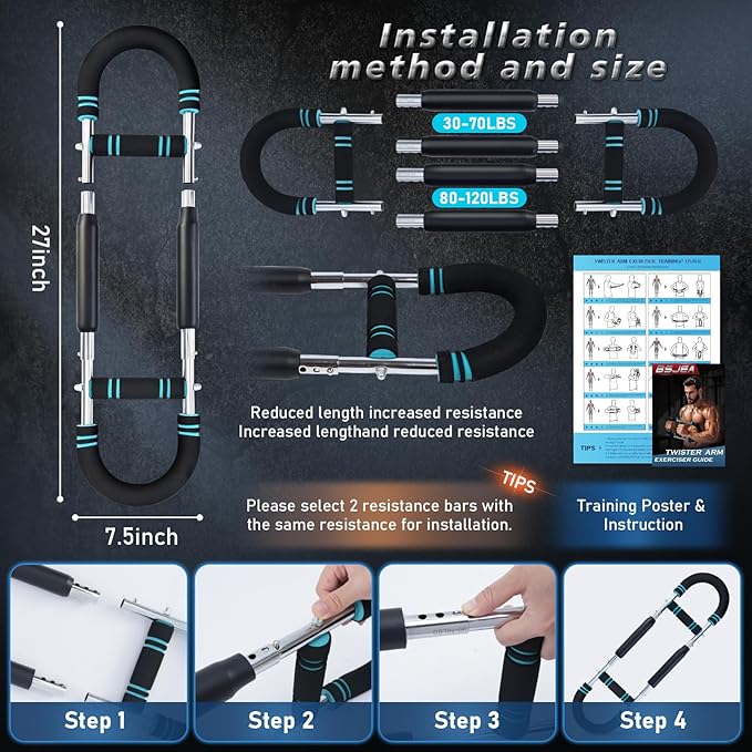 BEJEA Twister Arm Trainer,30-120lb Adjustable,Chest Trainer for Men & Women with 4 Springs & Train Poster,Arm Trainer for Chest Clip Muscle & Arm Strength