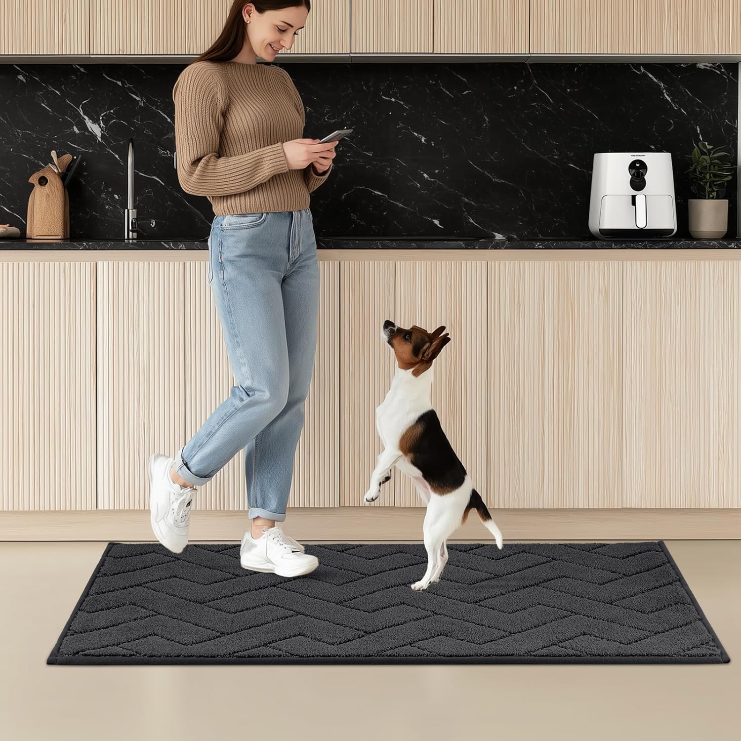 Machine Washable Kitchen Rugs 24" x 36", Non-Slip Kitchen Runner Rugs Mats for Floor, Absorbent Comfort Standing Mats for Kitchen, Sink, Laundry and Hallway, Charcoal