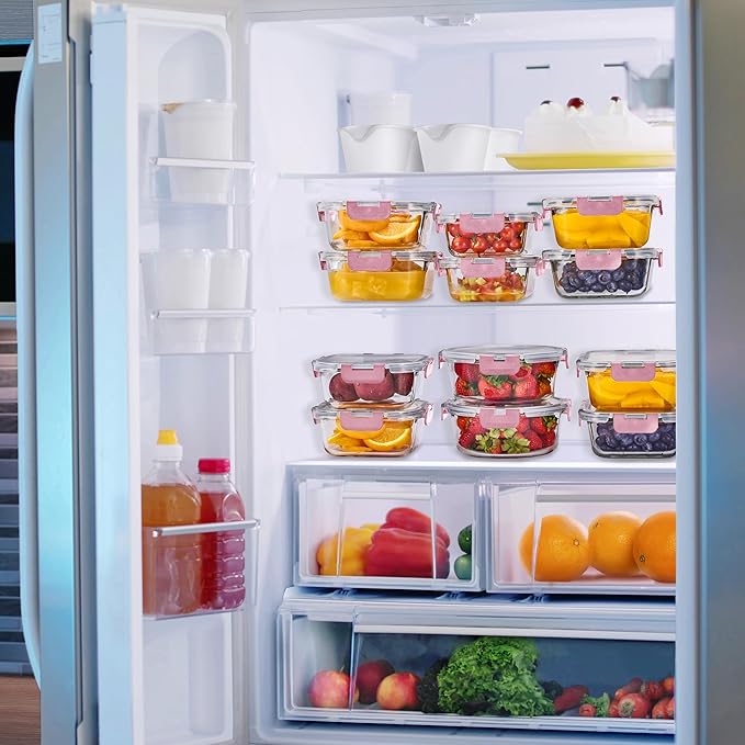 - Glass Meal Prep Containers with Lids: These airtight food storage containers are ideal for storing prepped meals, leftovers, chopped fruits and veggies, snacks, and more making kitchen storage convenient. Use as meal prep lunch box, salad jars with lids, meal prep glass containers with lids, baby food storage containers, pet food storage containers, freezer containers for food storage, meal prep containers, glass collapsible food storage containers, or oven safe glass meal prep containers.