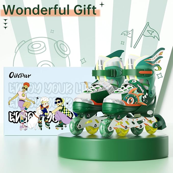 - 【Gift-Ready Package】 Inline Skates is a great way to control the body and improve children's balance and coordination while having fun.Packaged in a festive gift box, they’re the perfect gift for Birthday, holiday, Christmas gifts.