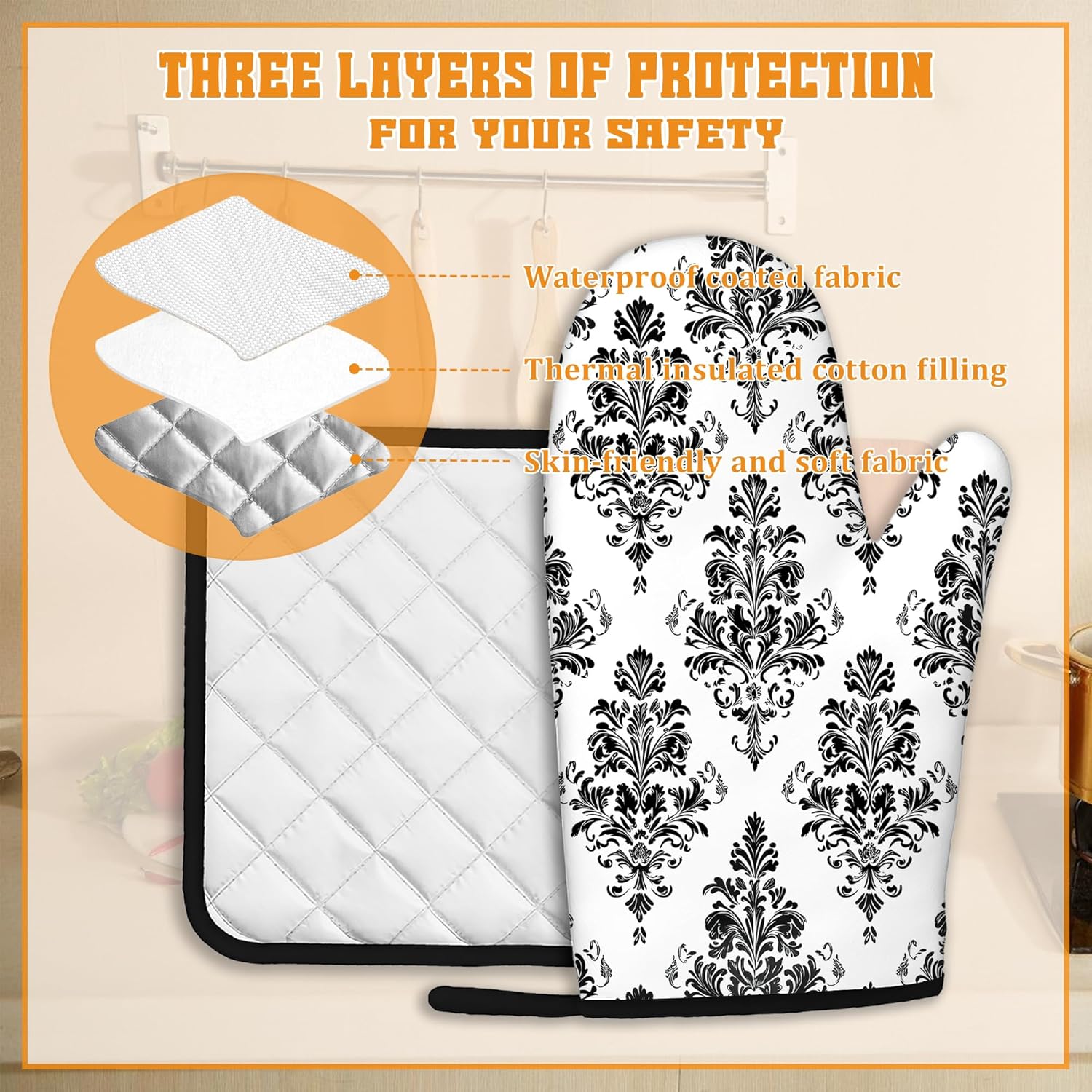 - Heat Resistant: Made from polyester and insulating cotton, these oven mitts and pot holders provide excellent heat resistance to effectively protect your hands from hot pots, pans, and baking trays. Cook with confidence and safety.