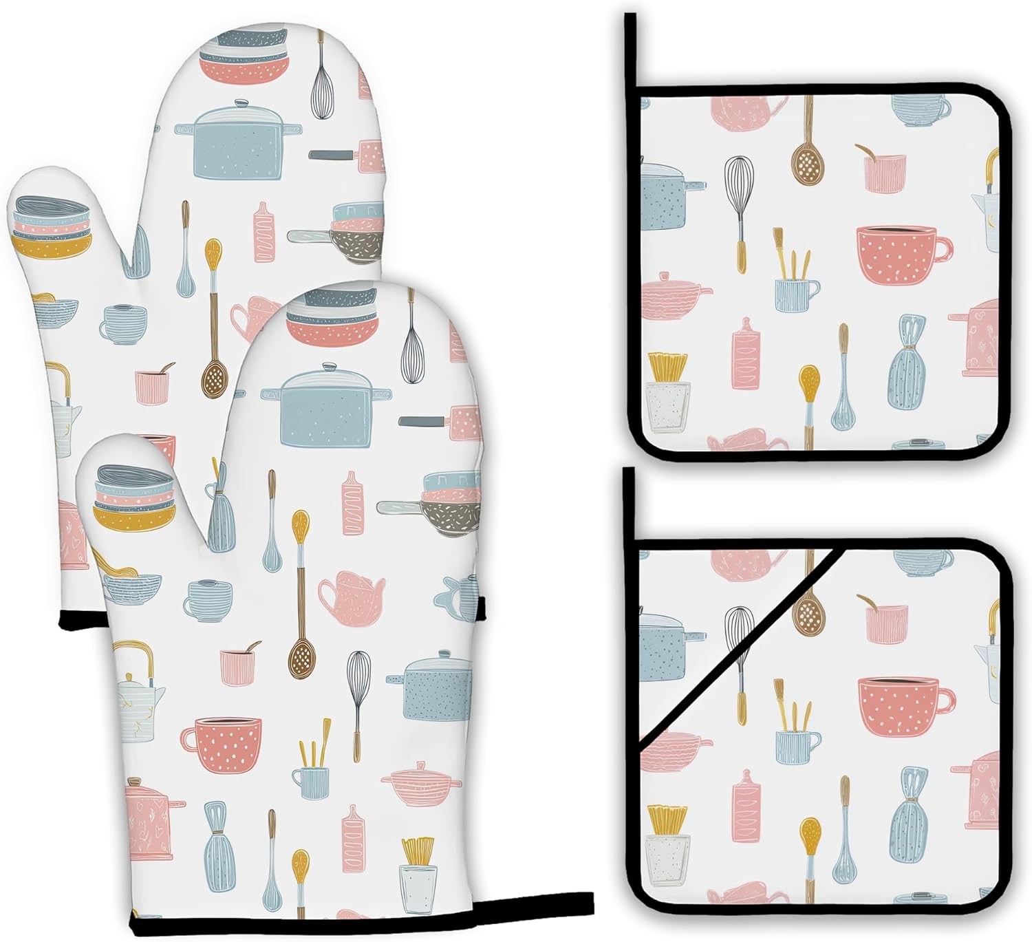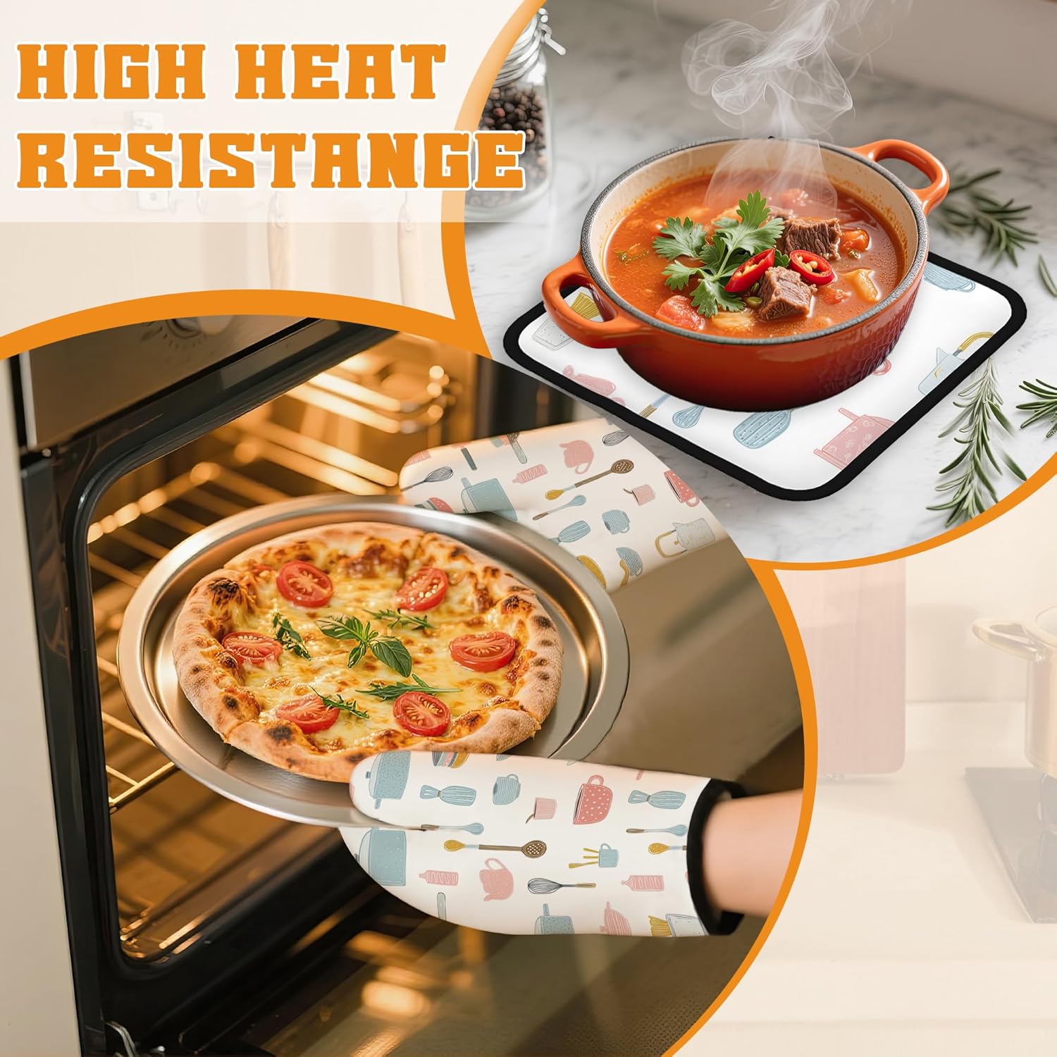 - 4-Piece Set: Includes 2 oven mitts and 2 heat-resistant pads, providing a practical and complete combination for your daily kitchen needs. Ideal for cooking, baking, grilling, and handling hot dishes.