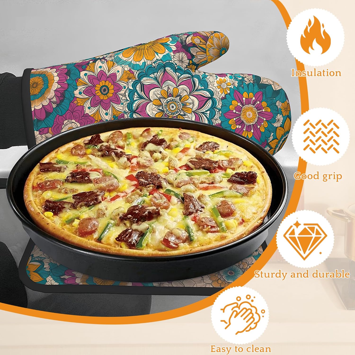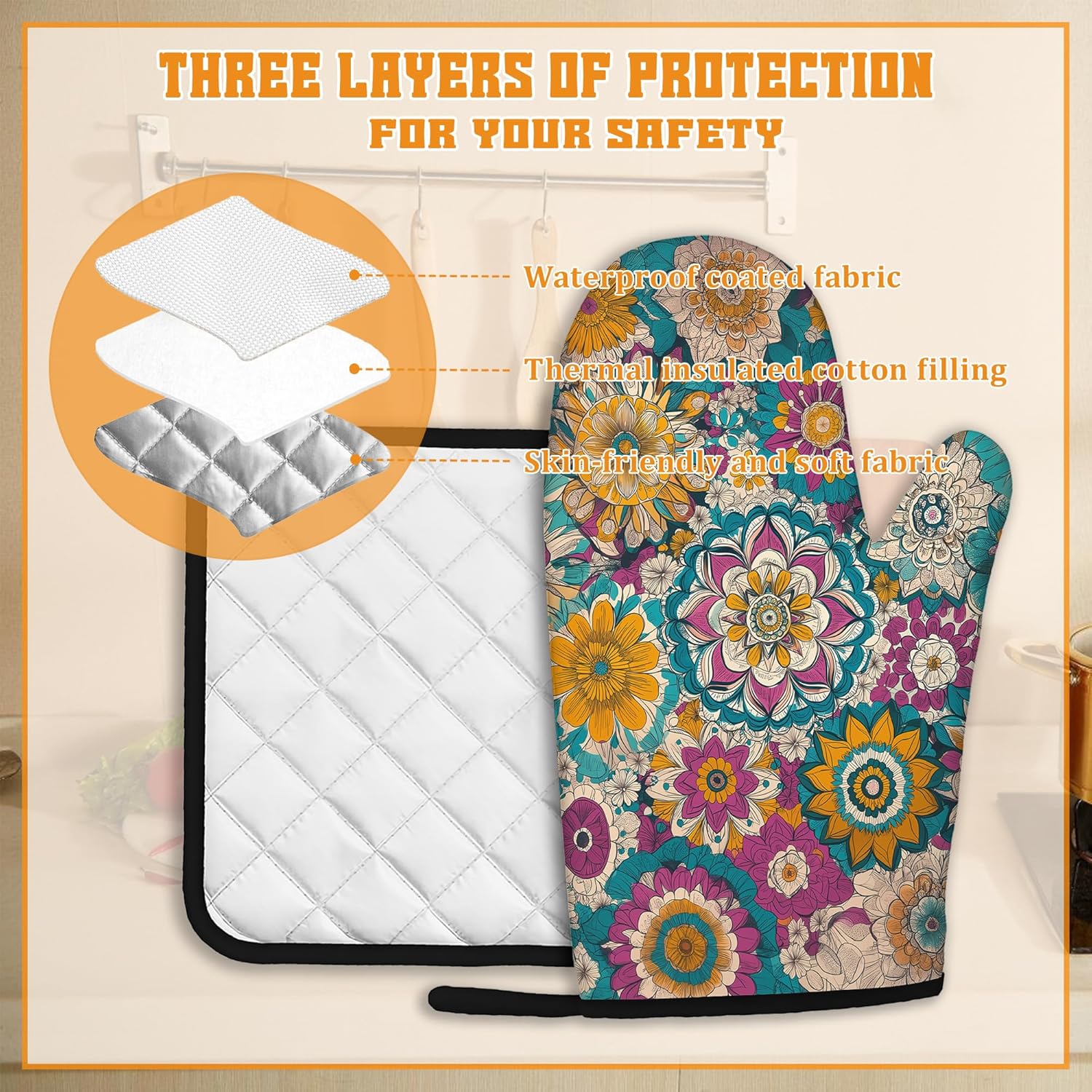 - Heat Resistant: Made from polyester and insulating cotton, these oven mitts and pot holders provide excellent heat resistance to effectively protect your hands from hot pots, pans, and baking trays. Cook with confidence and safety.