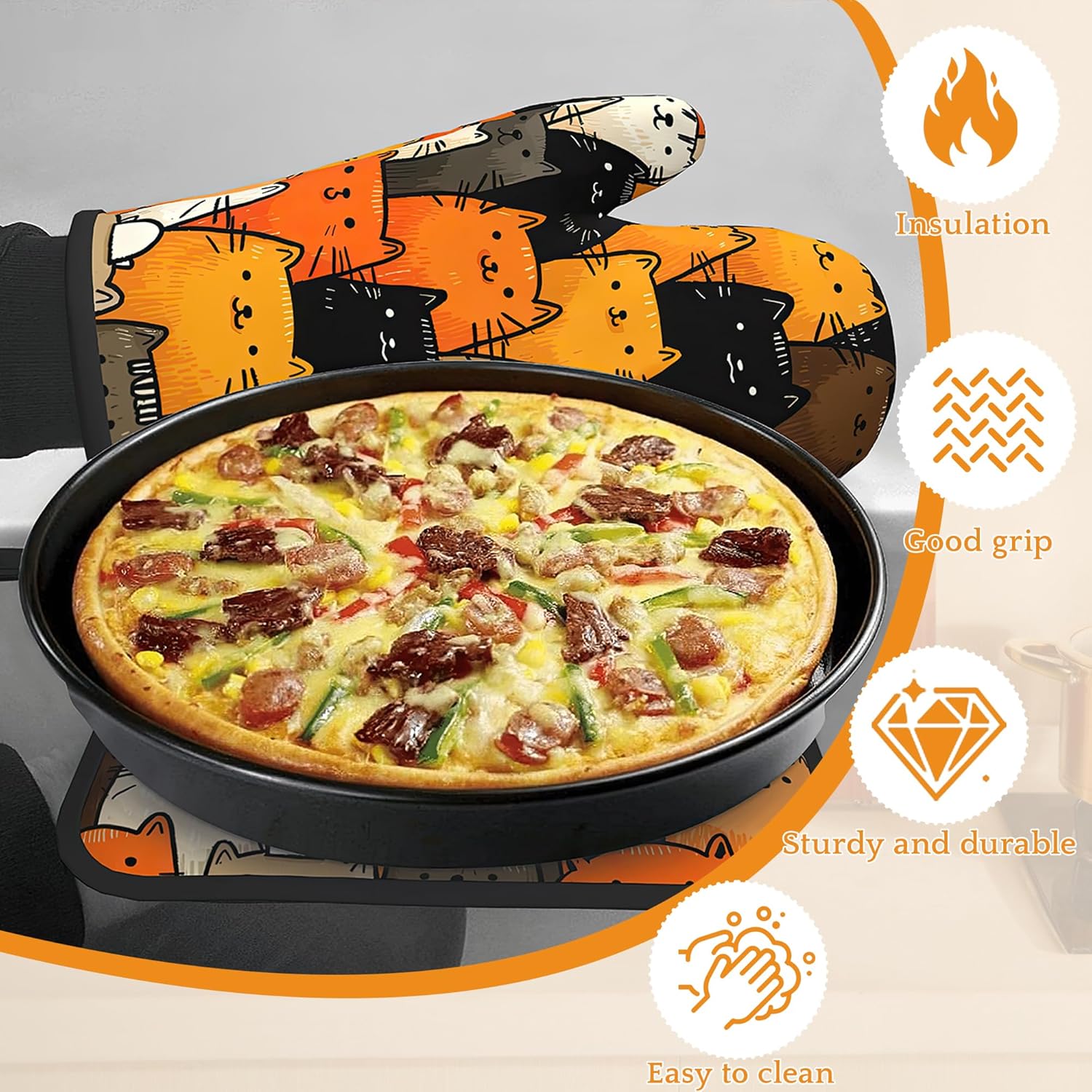 - Heat Resistant: Made from polyester and insulating cotton, these oven mitts and pot holders provide excellent heat resistance to effectively protect your hands from hot pots, pans, and baking trays. Cook with confidence and safety.