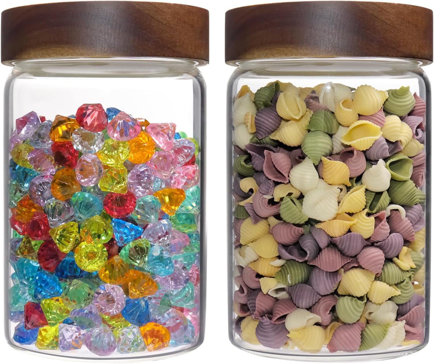 - 【WIDE APPLICATIONS】 Glass kitchen container for pantry organization and storage are suitable for storing various dried ingredients to retain their freshness, with clear glass jars, you can easily see inside and quickly find the ingredients you need.Glass jars with wood lids perfect for storing dry food , such as,cookies,dried beans,pepper,oatmeal,jams,chutneys, rice, flour, tea, coffee, biscuits, candy,cheese,flour, sugar, seeds,etc. Keep your kitchen tidy and safe,saving space and convenient .