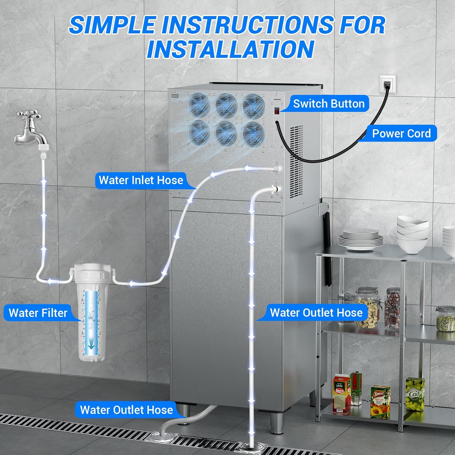 - Perfect for Commercial Environments - Designed for versatility and heavy use, this ice machine is ideal for restaurants, hotels, bars, cafes, and event venues. Depend on it to deliver a steady ice supply wherever and whenever it’s needed most.