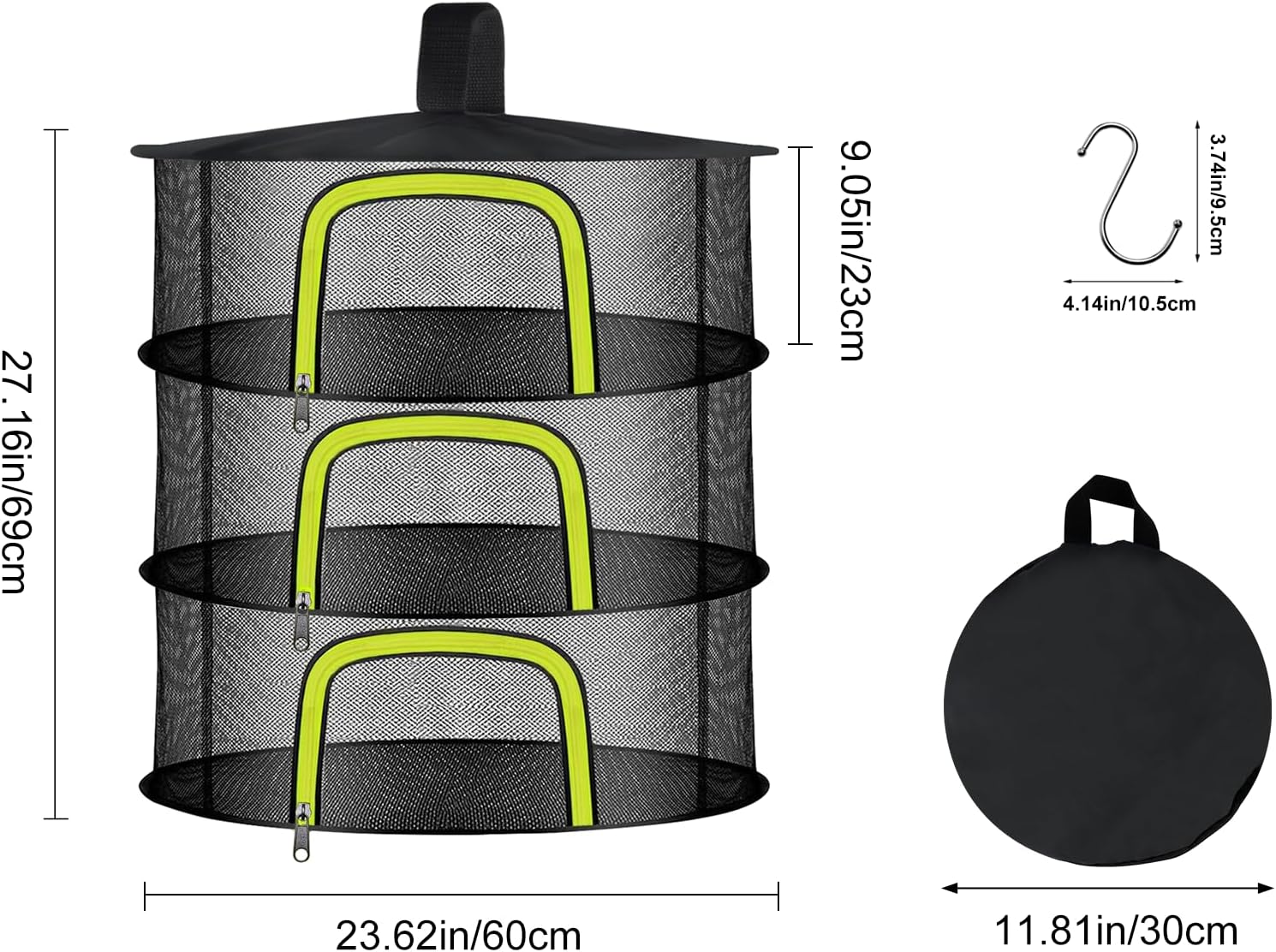 3 Layer Herb Drying Rack, Herb Drying Rack Hanging Mesh, Foldable Bud Drying Net with U-Shaped Zipper, Hooks, for Drying Herbs Plants, Flowers, Fruits, Food, Camping (3 Layers-23.62'')