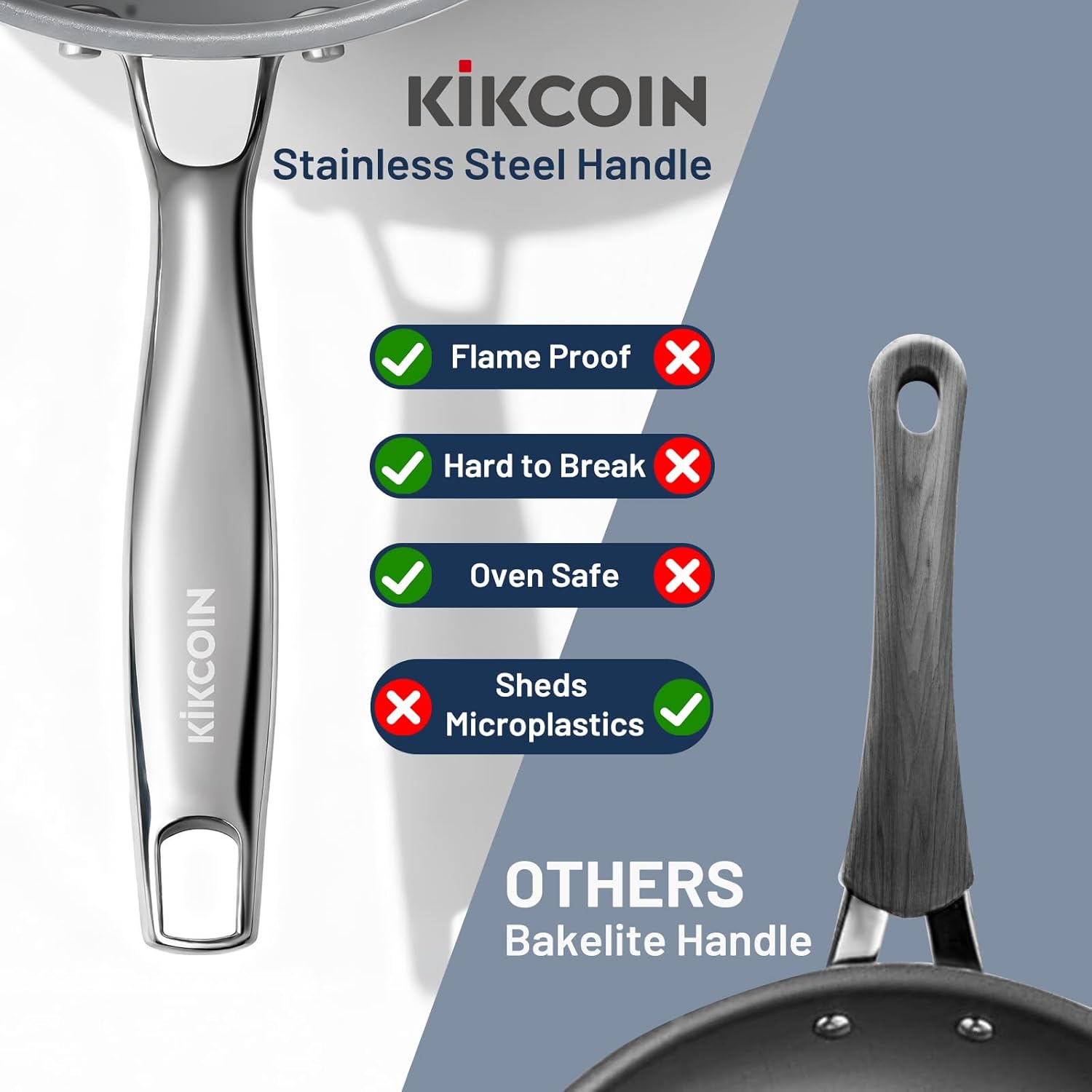 - 【STAINLESS STEEL HANDLE】These cooking pans are double-riveted with stainless steel handles, weight-balanced, rock-solid. Ergonomically shaped, ensuring a firm & non-slip grip, and no more burning your hands mid-cook. Whole set is oven safe - up to 840°F - versatile use from stovetop, oven to table.
