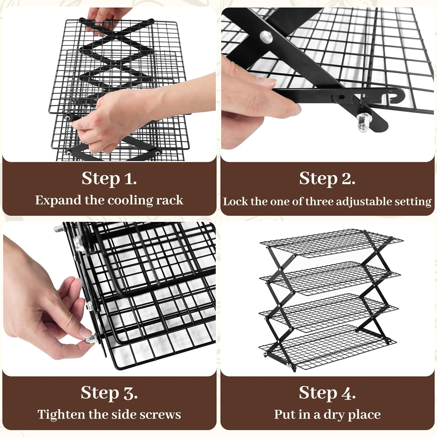 Pleafind 4 Tier Collapsible Cooling Rack - 3 Setting Design, Adjustable & Stackable Baking Rack, 5 Modes Cooling Racks for Cooking and Baking, Roasting & Grilling Gifts for Picnic Party