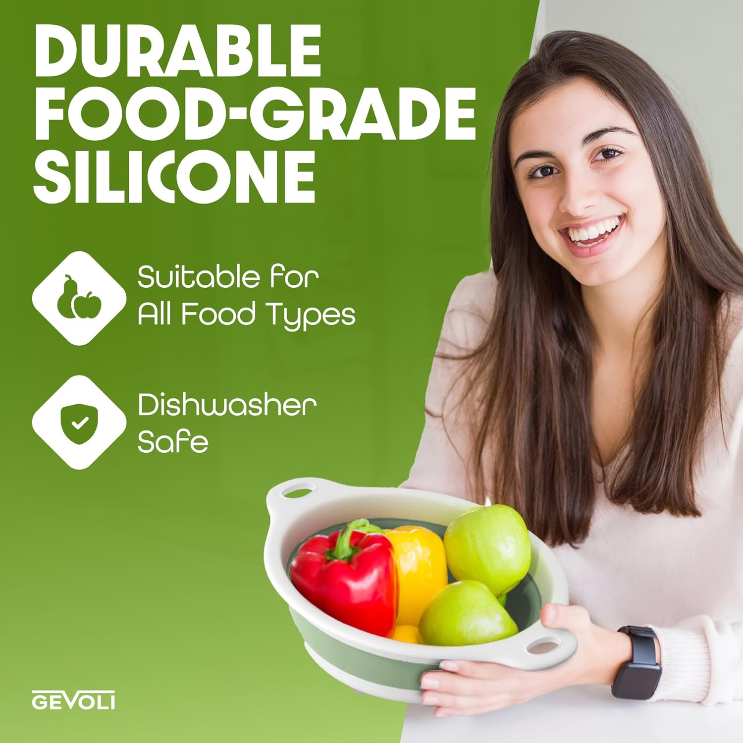 Collapsible Colanders (2 Pack Set) Food Strainers with Over-Sink Water Draining Base for Pasta Fruits and Vegetables (4 and 5 Quart) - White/Sage