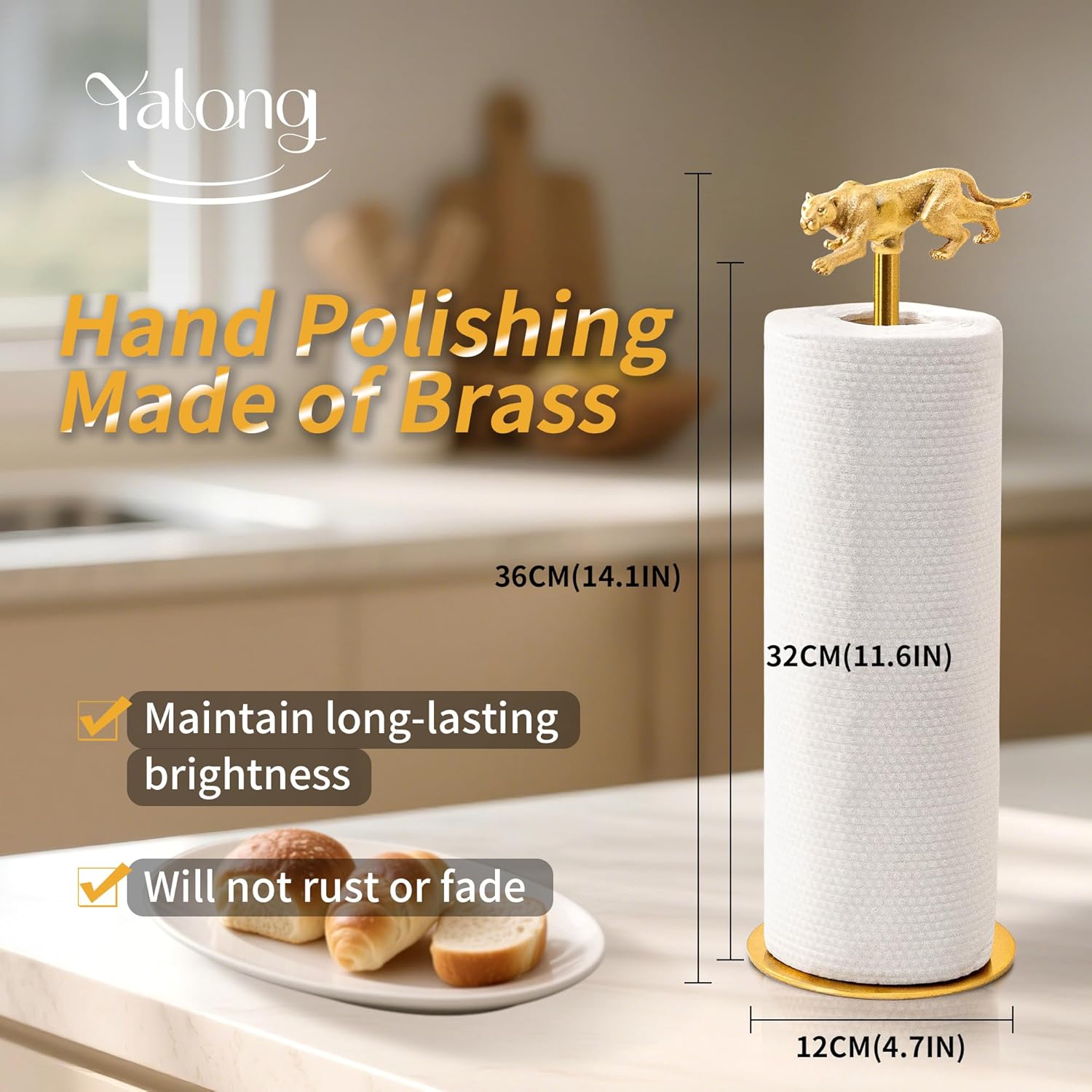 - Elegant and Functional Design: Designed with a charming Leopard motif and a vintage brass finish, this paper towel holder combines practicality with artistry. Its compact, freestanding structure fits seamlessly on any countertop, offering easy access to paper towels while enhancing your home’ s decor. Ideal as a kitchen towel holder or bathroom paper towel holder.